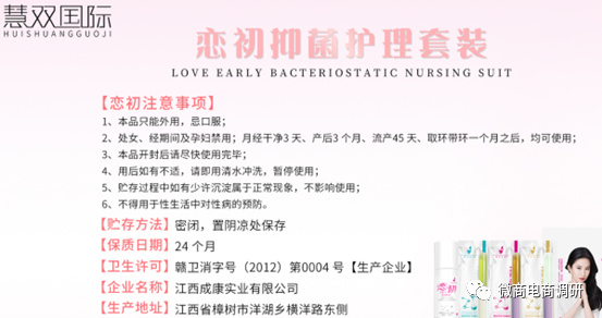 据推广人员提供的招商PPT资料显示,慧双国际旗下的恋初系列产品和江西未来药业旗下的爱恋初系列产品的卫生许可证号同样为“赣卫消证字(2012)第0004号”,可见,该系列产品仅为消毒产品,并非医疗器械或药品。