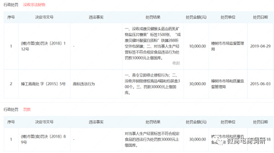据企查查显示,在过往的数年间,上述产品的生产方江西成康实业有限公司曾数次遭到相关监管部门的行政处罚。