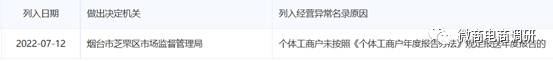 该中心成立于2020年4月30日,经营者的名字依旧是孙芬。2022年7月,该中心因未按照《个体工商户年度报告办法》规定报送年度报告而被烟台市芝罘区市场监督管理局列入企业经营异常名录之中,且至今未被移除。