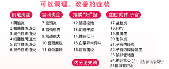 在慧双国际官网的相关页面内,也存在着类似的产品描述,该产品自称可以调理、改善各种阴道炎、各种宫颈炎症,以及盆腔炎、附件炎等疾病。值得一提的是,该宣传图片在经销商的朋友圈中也延续到了“爱恋初”凝胶的身上。